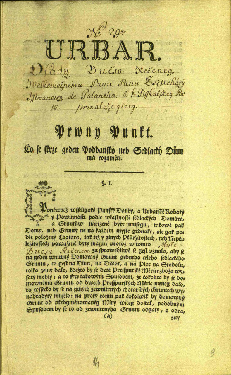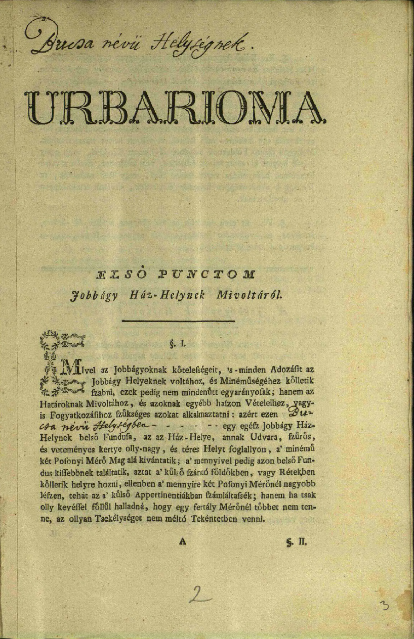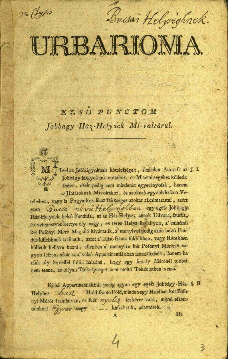 A zalai Bucsa (Kisbucsa) Urbáriomának első oldala